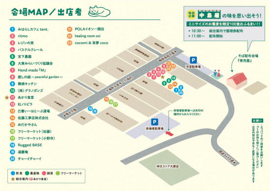 | 11 | あかり食堂 | 【総合案内】 雑貨販売, 蕎麦整理券配布 |